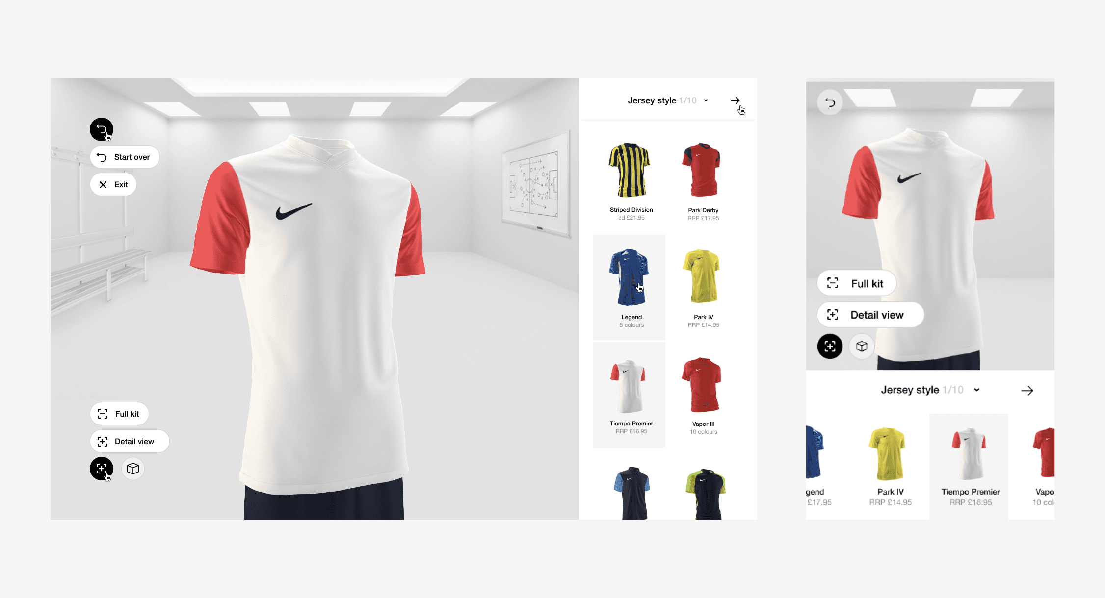 Designing the configurator meant dealing with a large number of possible combinations — from kit types and colors to materials and details.